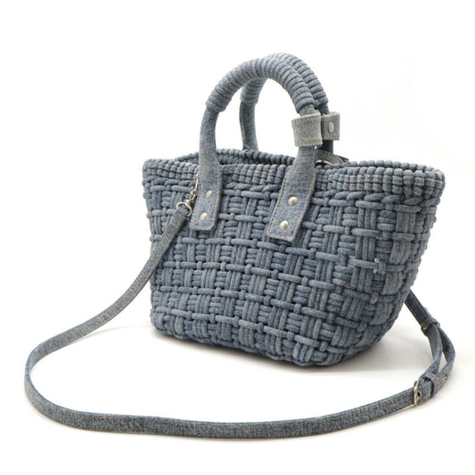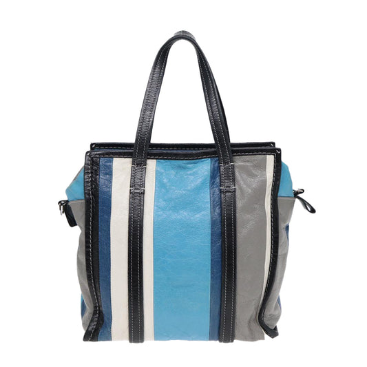 BALENCIAGA Bazaar Shopper XS Tote Bag Leather Blue Silver 443096 Auth yk14420