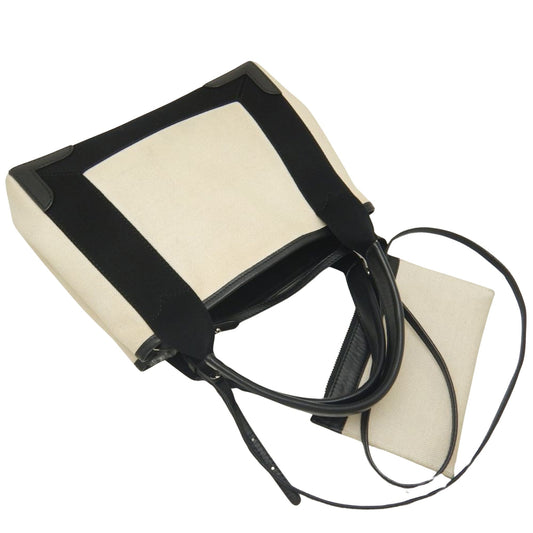 BALENCIAGA Cabas Hand Bag Canvas Silver White Auth ep5384