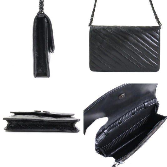 BALENCIAGA Bangle Bracelet Leather Black 466597 Auth hk1591