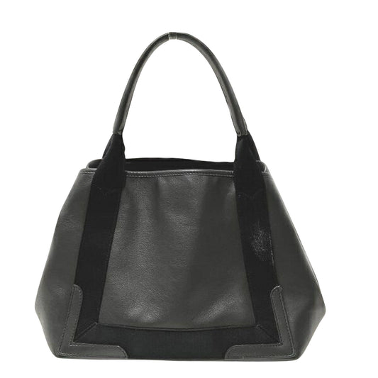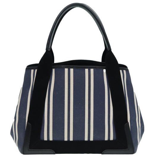 BALENCIAGA Navy Cabas Hand Bag Leather White Silver 339936 Auth bs17140