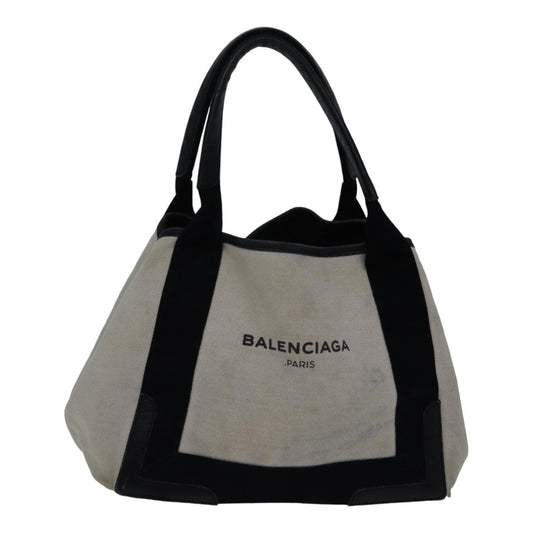 BALENCIAGA Hand Bag Canvas Beige Black Auth bs17795