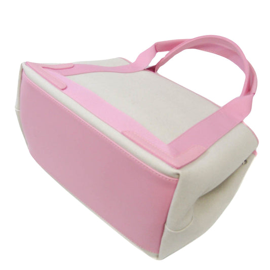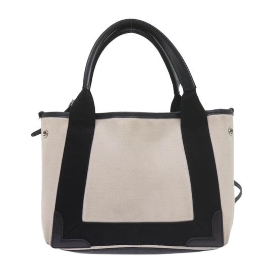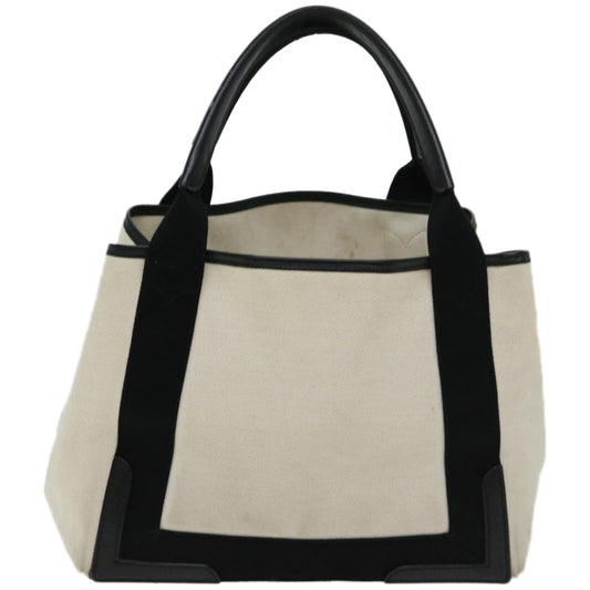 BALENCIAGA Hand Bag Canvas White Black Auth bs12378