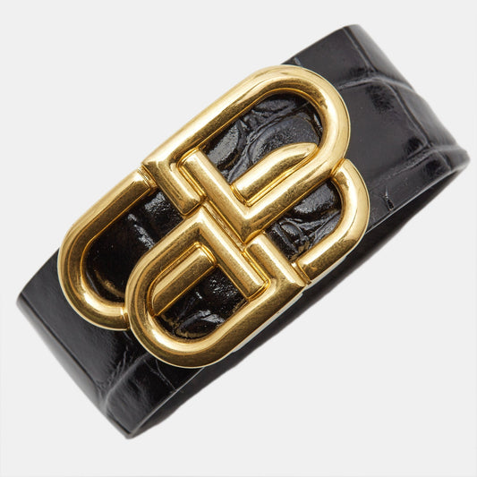 BALENCIAGA Logo Leather Gold Tone Bracelet M