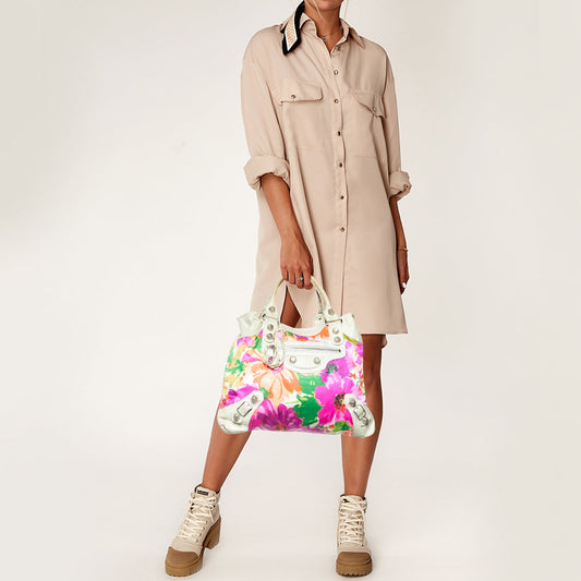 BALENCIAGA Multicolor Leather Patchwork Large Sunday Tote Bag