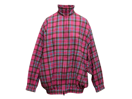 Pink & Multicolor Balenciaga Plaid Cotton Zip Jacket Size EU 34