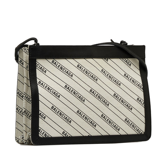 White Balenciaga All Over Logo Navy Pochette S