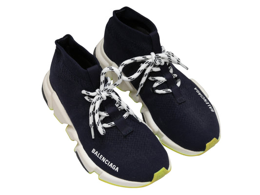 Navy & White Balenciaga High-Top Sock Sneakers Size 37
