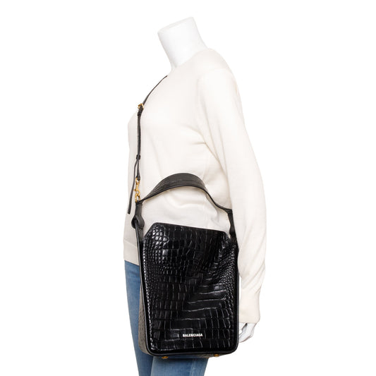 Balenciaga Black Croc-Embossed Leather Tool 2.0 Small N/S Tote w/ Strap & Box
