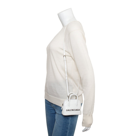 Balenciaga White Crocodile Embossed Ville Mini Top Handle Bag w/ Strap