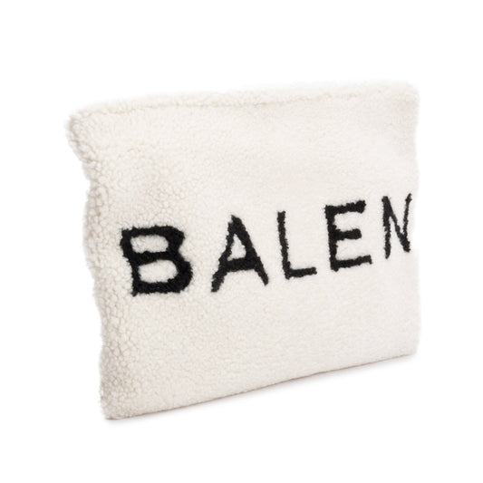 Balenciaga White Shearling Logo Pouch