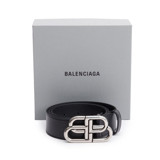 Balenciaga BB Black Leather Large Belt 85 w/ Box