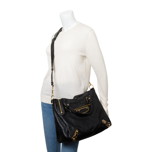 Balenciaga Black Chevre Leather Metallic Edge Velo City Bag