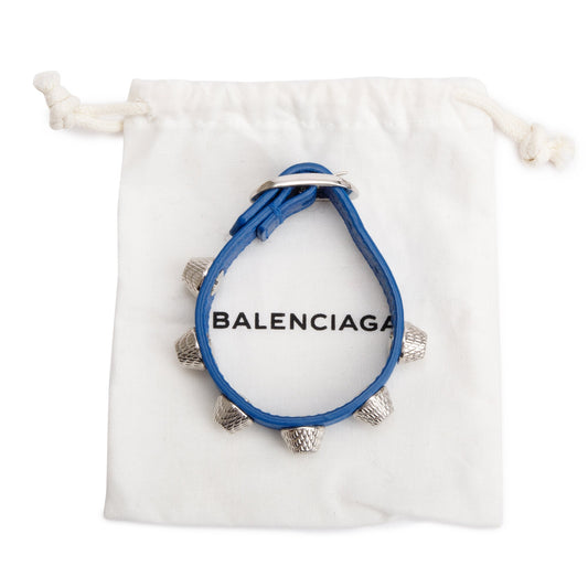 Balenciaga Silver Hardware Blue Leather Studded Wrap Bracelet, Size M