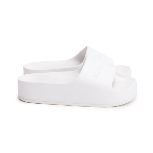 Balenciaga White Rubber Printed Logo Platform Slides, Size 40