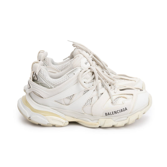 Balenciaga White Leather Fabric Mesh Track Sneakers, Size 38