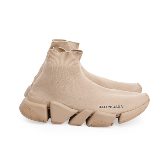 Balenciaga Beige Knit Speed LT Trainer Sock Sneaker, Size 8