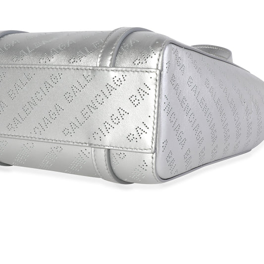 BALENCIAGA New Silver Calfskin Logo Perforated XXS Everyday Tote