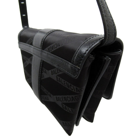BALENCIAGA Turn Lock Chain Shoulder Bag Leather Beige Gray Silver Auth am6814