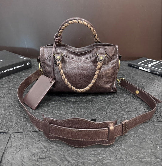 Balenciaga Brown Gold Buckle Mini Motorcycle Handheld Crossbody Bag