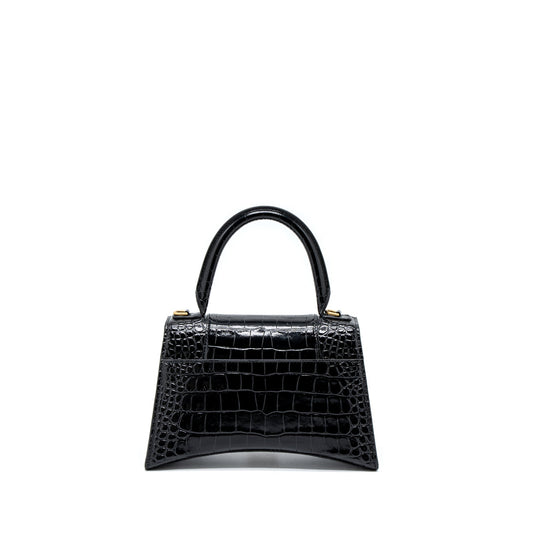 Balenciaga Hourglass Small Handbag Croc Embossed Calfskin Black GHW