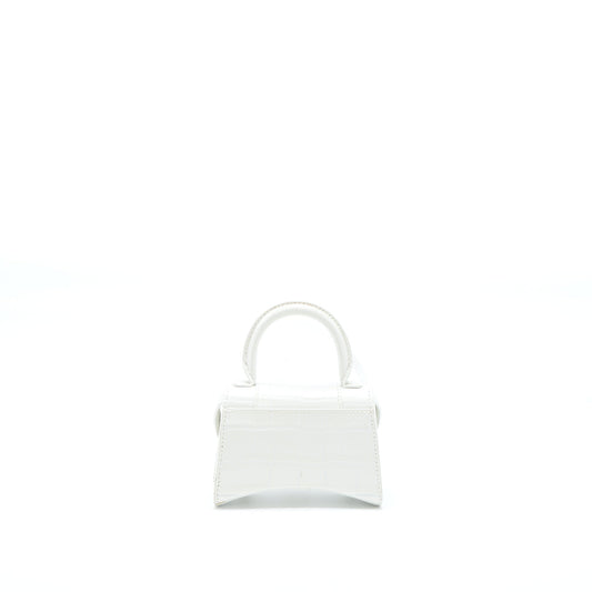 Balenciaga Mini Hourglass Bag Croc Embossed Calfskin White SHW