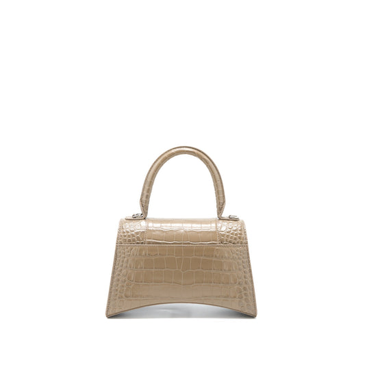 Balenciaga Small Hourglass Bag Cro Embossed Calfskin Dark Beige SHW