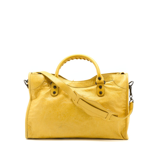 Balenciaga Classic City Bag Lambskin Yellow with Black Hardware
