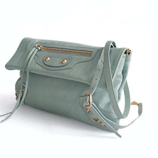 BALENCIAGA Balenciaga Balenciaga Giant Clutch with shoulder strap in aqua green leather