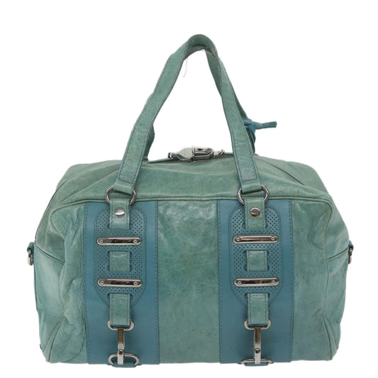 BALENCIAGA Boston Bag Leather Light Blue Auth bs9730