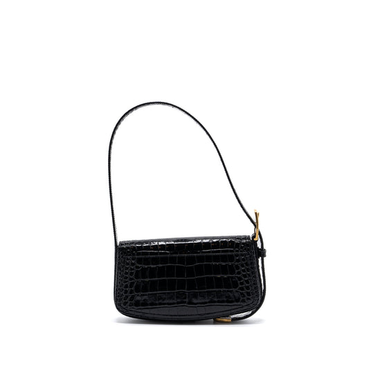 Balenciaga Ghost Sling Bag Croc Embossed Leather Black GHW
