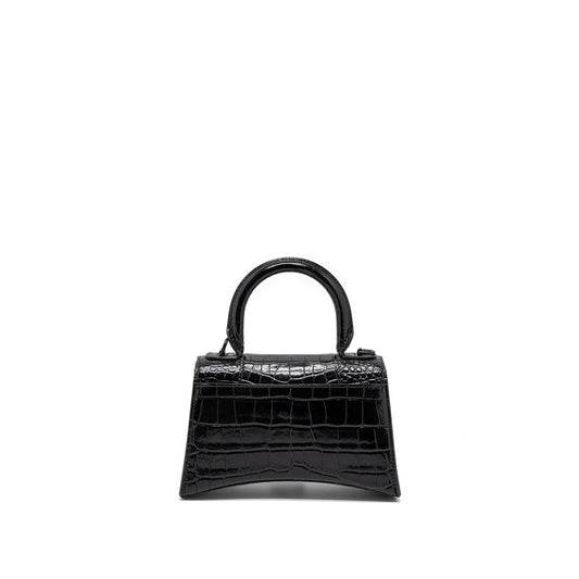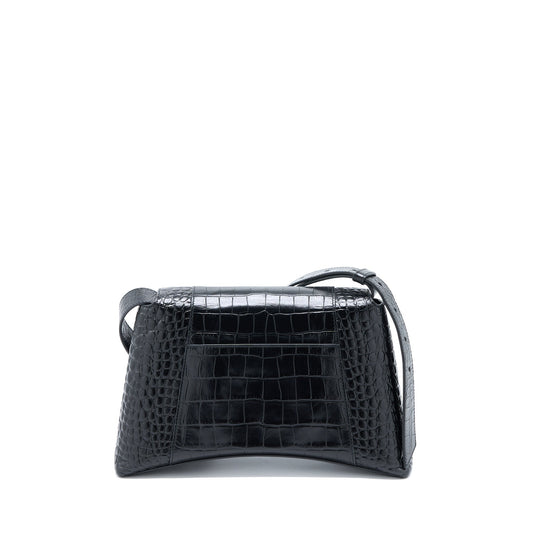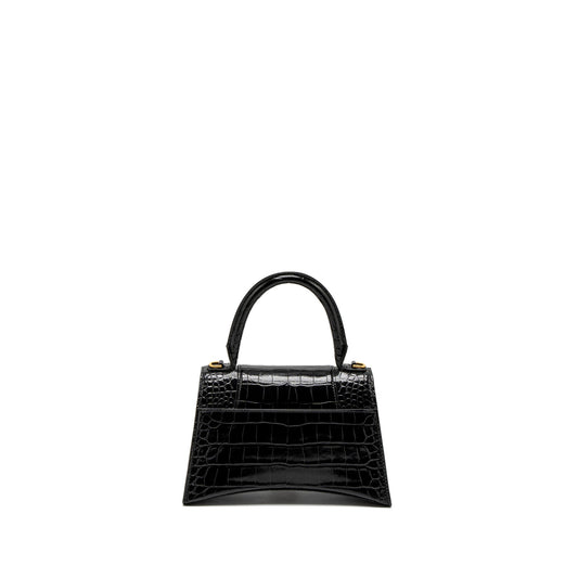 Balenciaga Hourglass XS Croc-Embossed Leather Black with Black Hardware