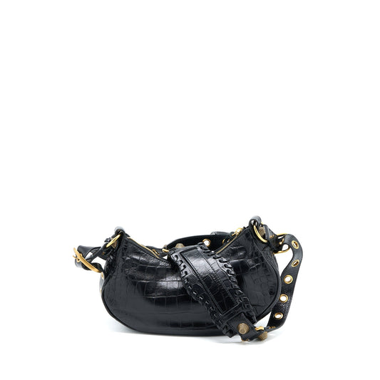 Balenciaga Le Cagole XS Shoulder Bag Croc-Embossed Calfskin Black Aged-Gold Hardware