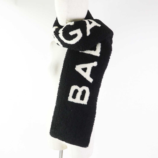 Balenciaga Lamb Fur Logo Scarf Black White