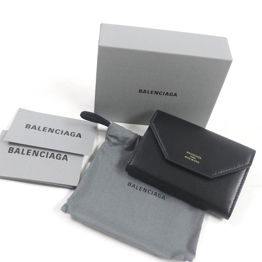 Balenciaga Leather Trifold Wallet Black