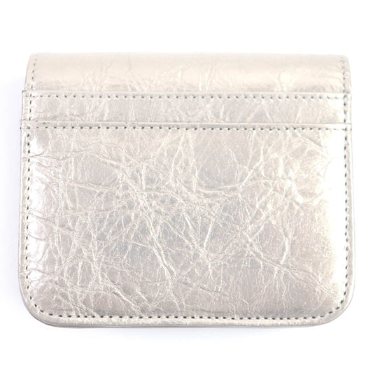 Balenciaga BB Logo Silver Leather Bifold Wallet