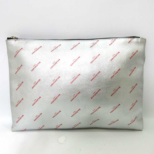 Balenciaga Leather Logo Large Clutch Silver