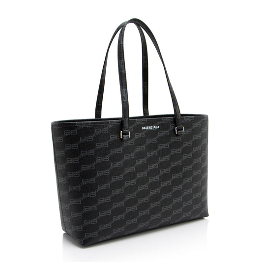 Balenciaga BB Monogram Canvas Signature E/W Medium Shopper Tote (SHF-sezzpJ)