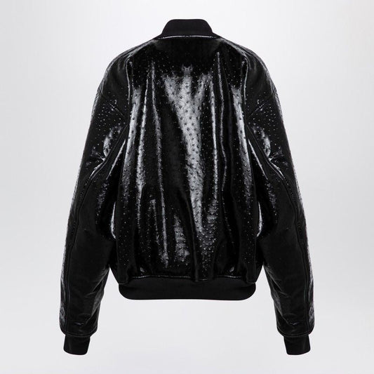 BALENCIAGA Ostrich-Effect Lambskin Leather Bomber Jacket - Women