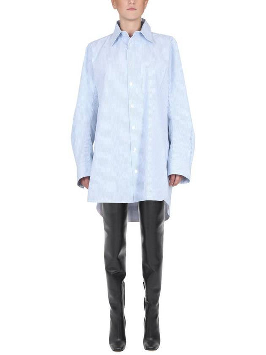 Bottega Veneta Women's Pinstripe Compact Cotton Shirt Pale Blue