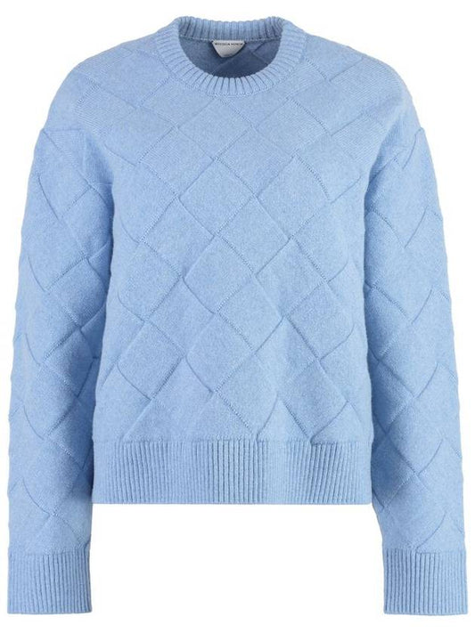 Bottega Veneta Intrecciato Wool Knit Top Light Blue