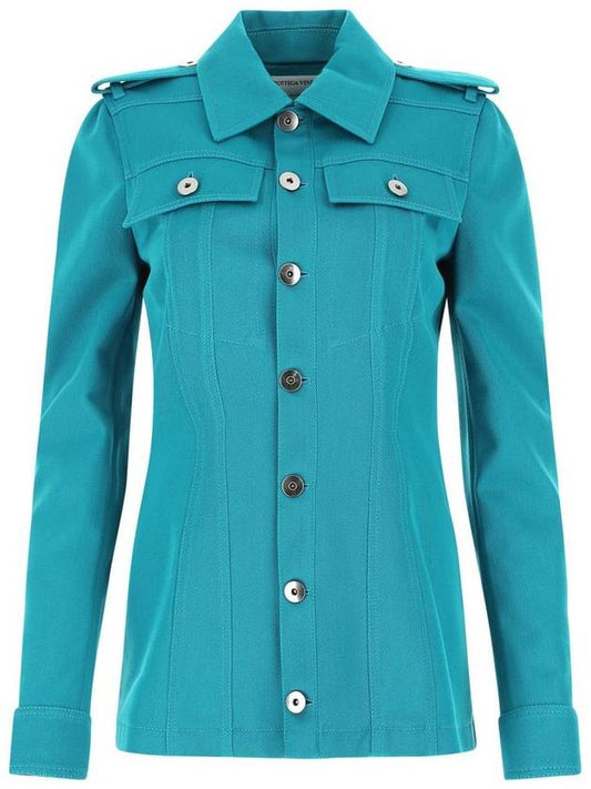 Bottega Veneta Women's Single Breasted Slim Jacket Blue