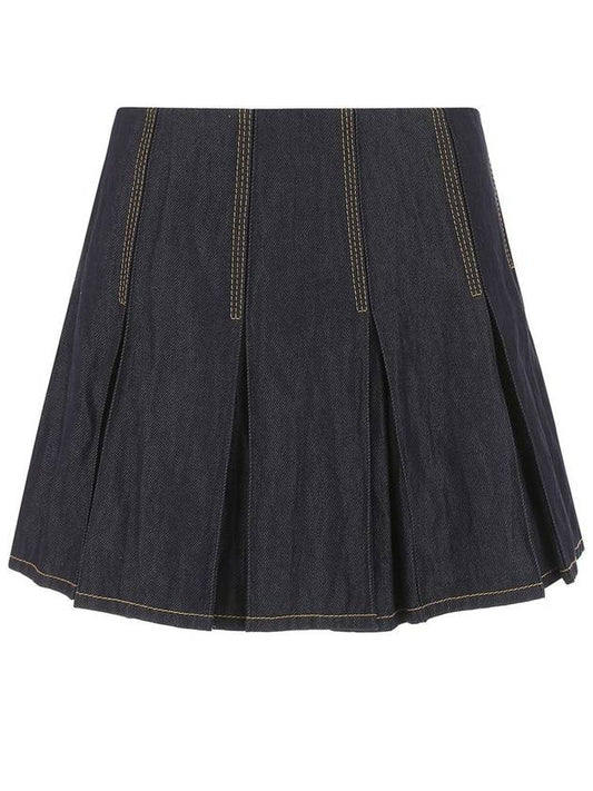 Bottega Veneta Stitched Denim Pleated Skirt