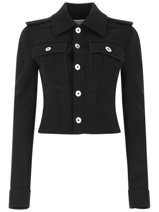 Bottega Veneta Women's Virgin Wool Epaulet Short Jacket Black