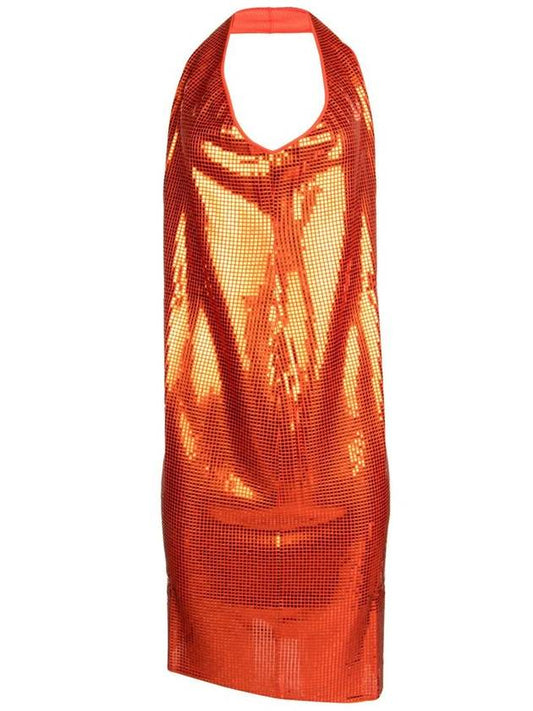Bottega Veneta Metallic Halterneck Midi Dress Orange