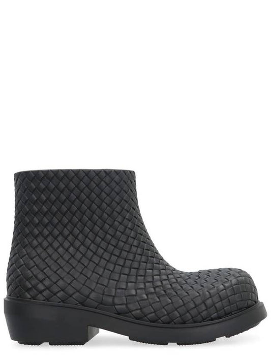 Bottega Veneta Fireman Intrecciato Leather Ankle Boots Black