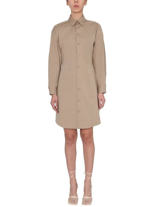 Bottega Veneta Button Up Shirt Midi Dress Beige
