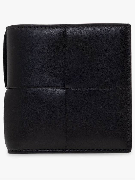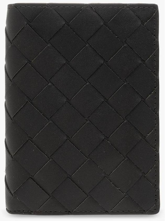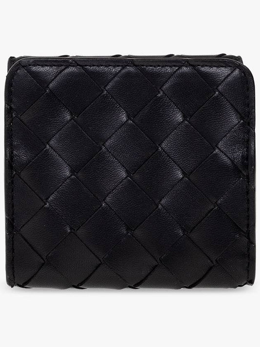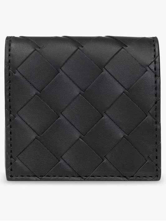 Bottega Veneta Tiny Interciato Bifold Double Flap Bifold Wallet Black