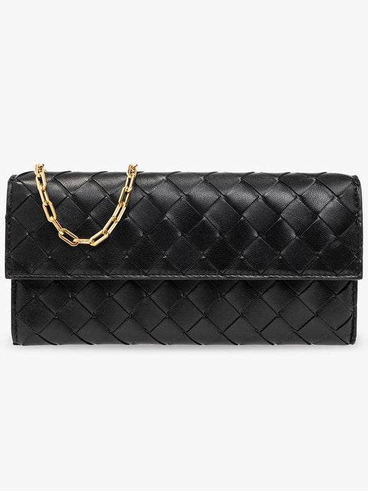Bottega Veneta Intrecciato Chain Long Wallet Black