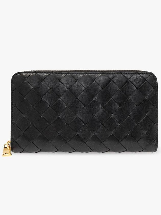 Bottega Veneta Intrecciato Zipper Around Leather Long Wallet Black