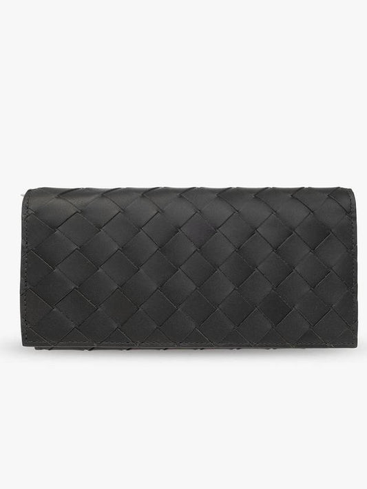 Bottega Veneta Intrecciato Flap Long Wallet Black